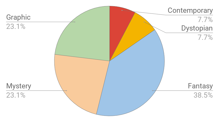 Looking at these stats actually surprised me I had no idea I had read that much this month as it just felt like such a slow reading month. It’s my second best month of the year and raises my hopes for tackling my over ambitious N.E.W.Ts TBR this month.