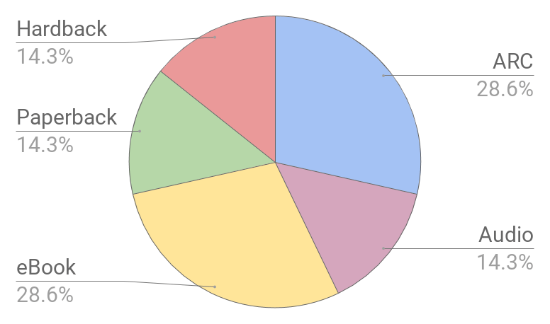 The formats are nicely varied from easily picked up ebooks and ARCs that I had committed to read. Managed to clear a couple of books of my TBR and a new read too.