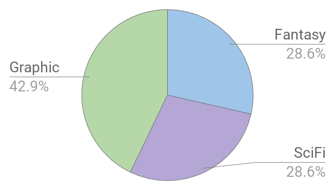This is a bit surprising I think this is the first month ever with no YA what so ever. Most of my reads were GN or shorter novellas so it is understandable.