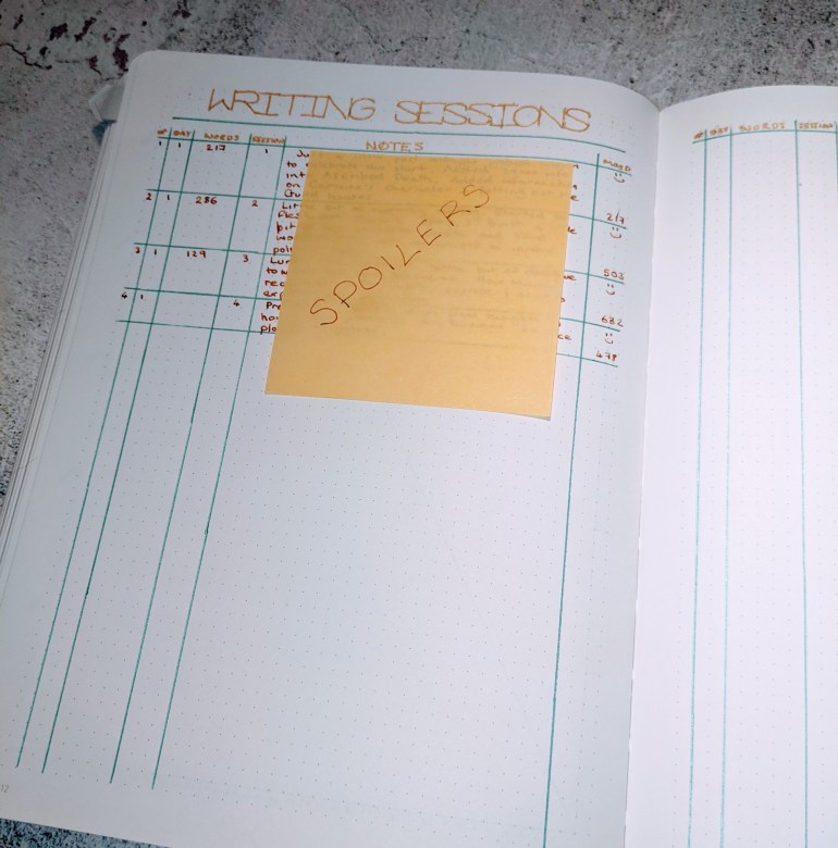 I then have my favourite spread for NaNoWriMo. My Writing Sessions. I write notes at the end of each session of writing I do, i not down what section i was working on, how i feel and where I want to go next. This means when i start my next session I can get back into the writing zone easier by reviewing these notes.