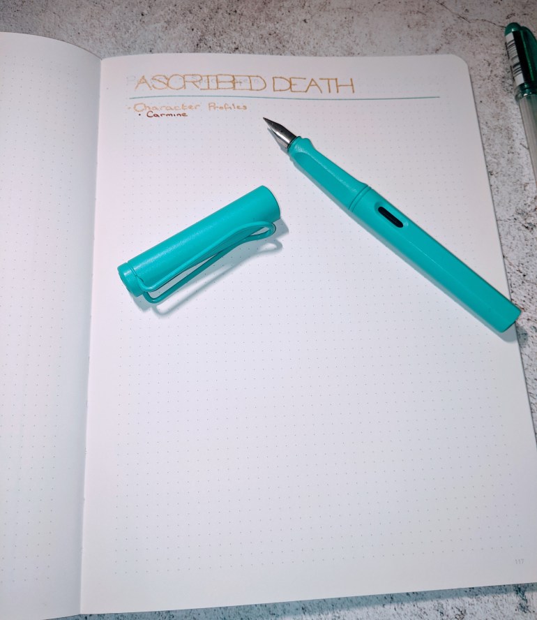 For day to day handwriting I have chosen my Turquoise Lami Safari fountain pen with fine nib, it is filled with Diamine ink in sepia.
