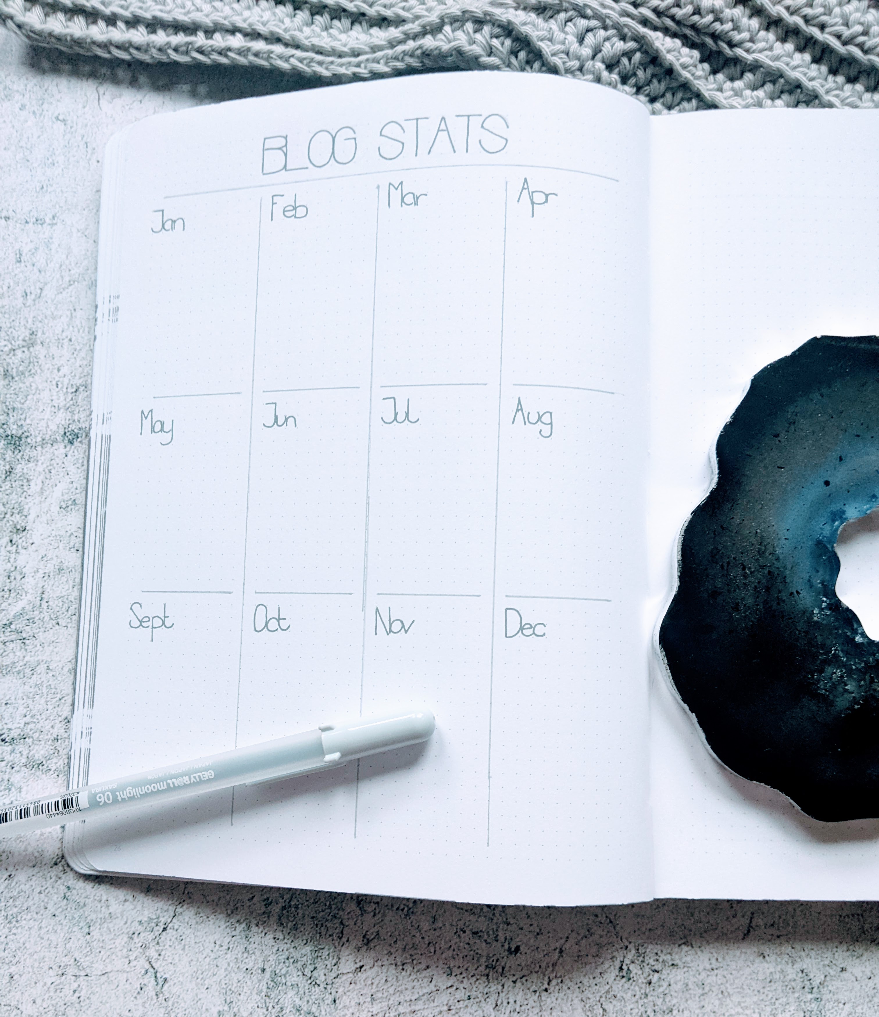 I also have my Reading stats. This is so I can keep track for wrap ups and what helps me write my end of year wrap up post too. I note the number of books, pages, my ratings and my favourite book for that month and the check box is for when I have posted my Wrap up for that month. I have started a Blog Stats page so I can keep up with my blog and Instagram goals.
