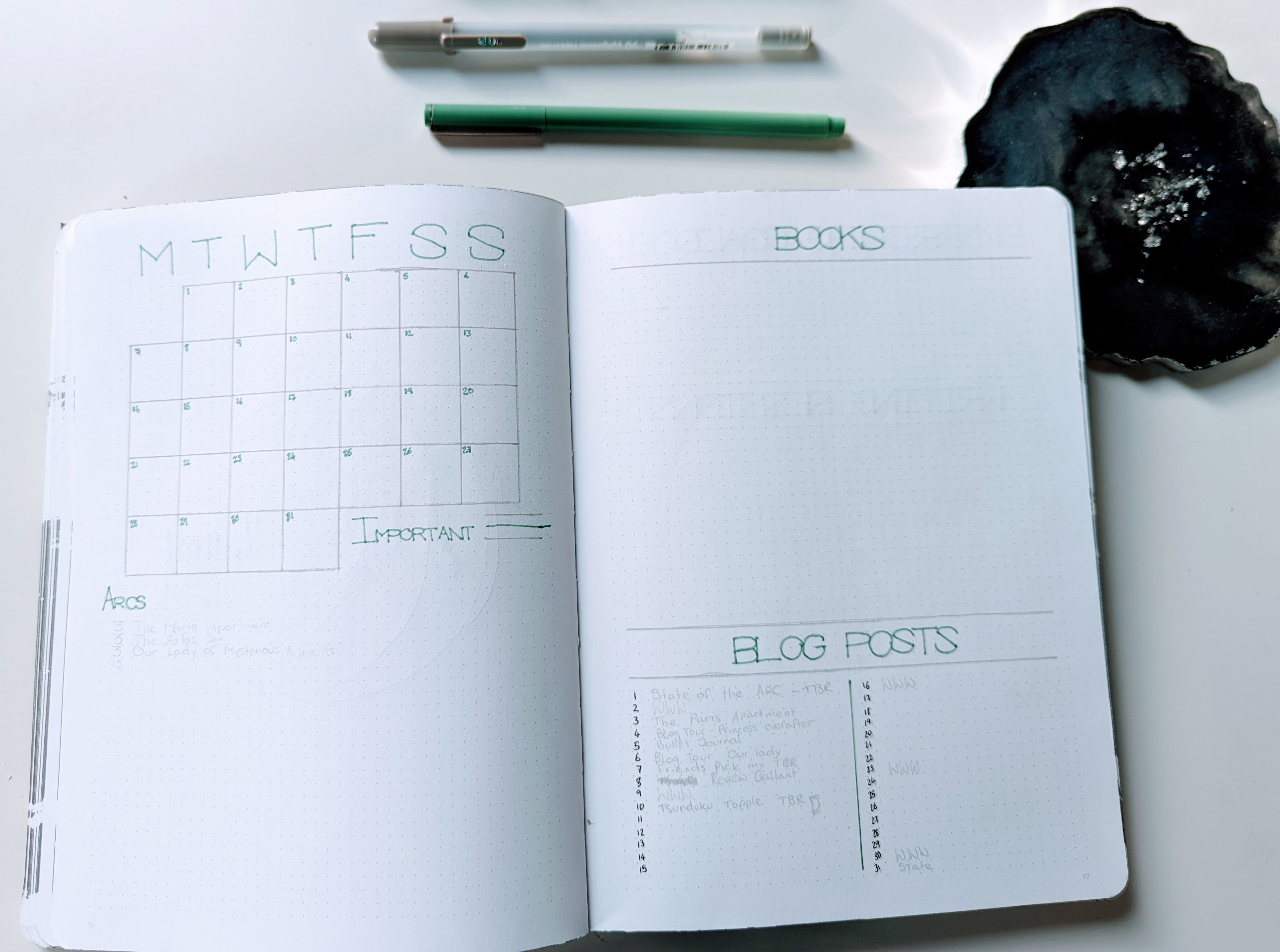 I am back with my monthly bookish bullet journal post! I have my new look Title page, new additions to my monthly pages to make it even more bookish than last year.